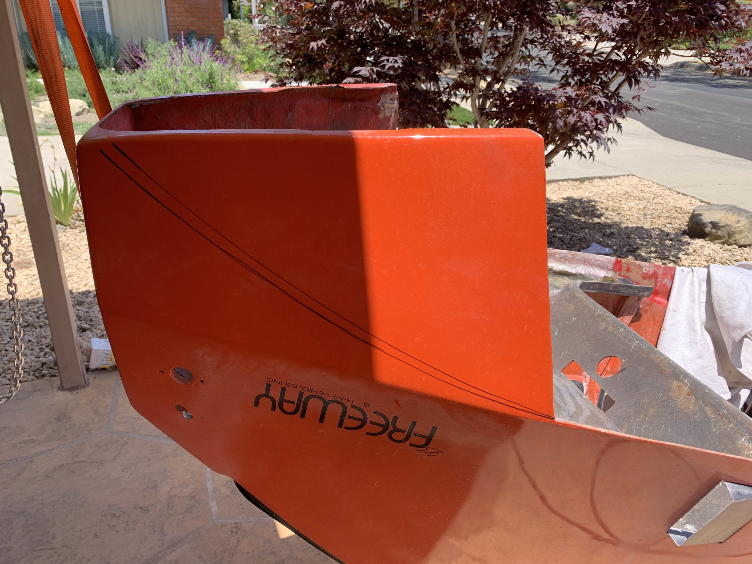 One thing I think is pretty clear at this point is that while I appreciate the Freeway for what it is, I’m not at all precious about it being “original” or anything. One part I particularly dislike is the rear engine/wheel cowling area. It both looks pretty terrible (in my opinion) and the fiberglass in that area is also very thin and starting to fail.