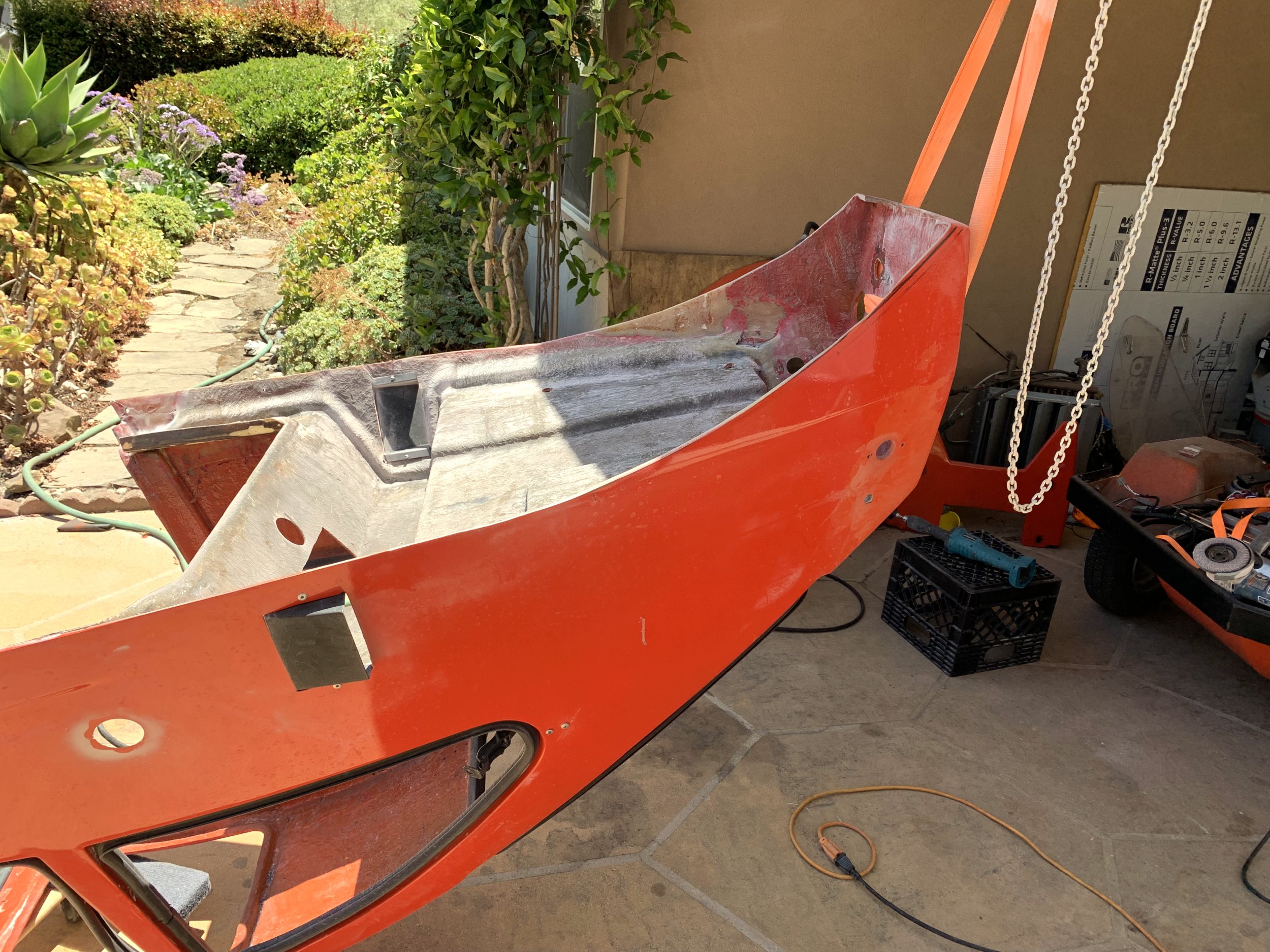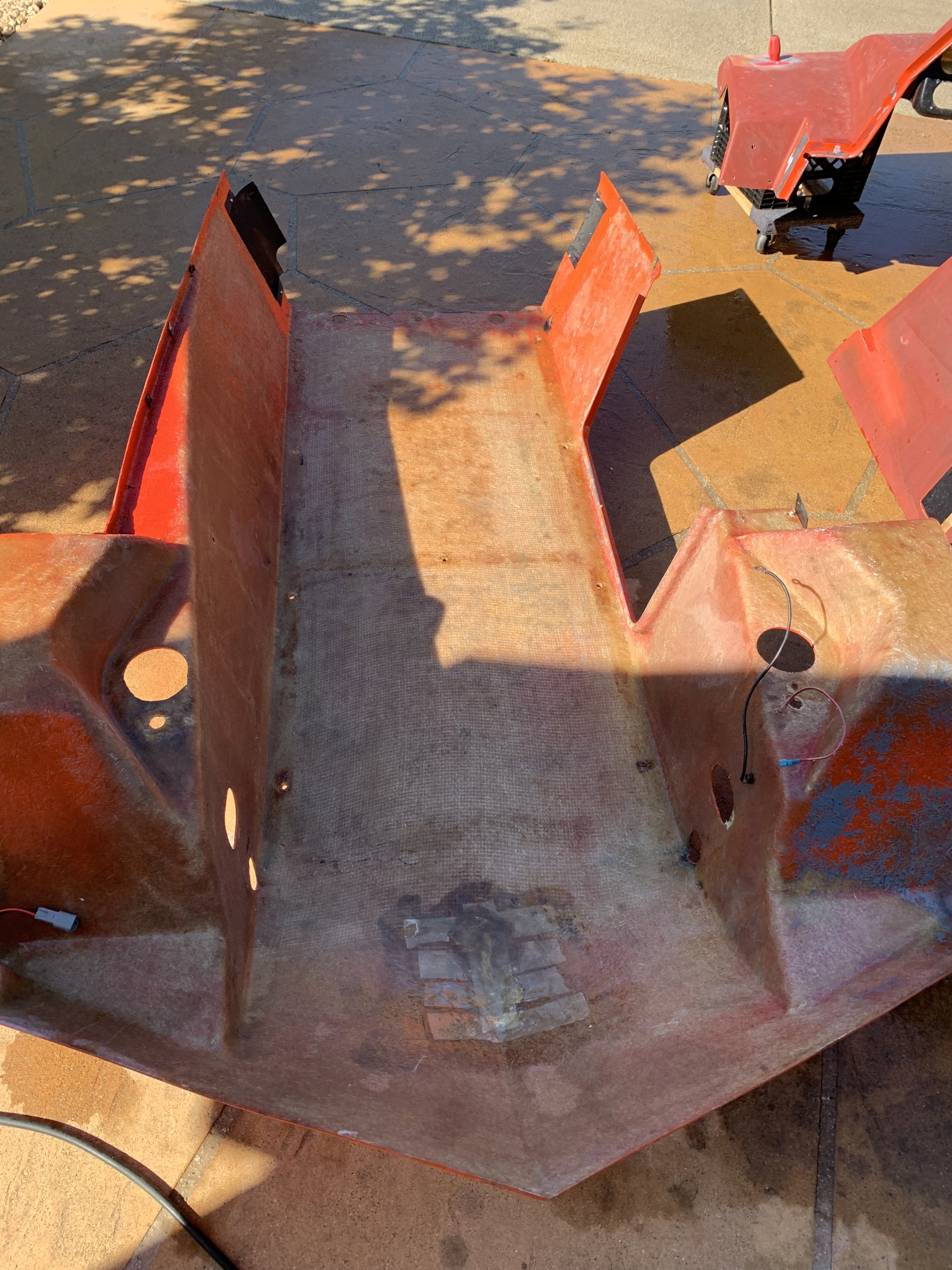I’m in part doing this because the lower body half is effectively the floor of the cabin, and I can notice it flex when I put weight on the interior surface. I think this is normal, but I’m not going to skip a chance to reinforce it a bit since I’m already doing a bunch of work here.