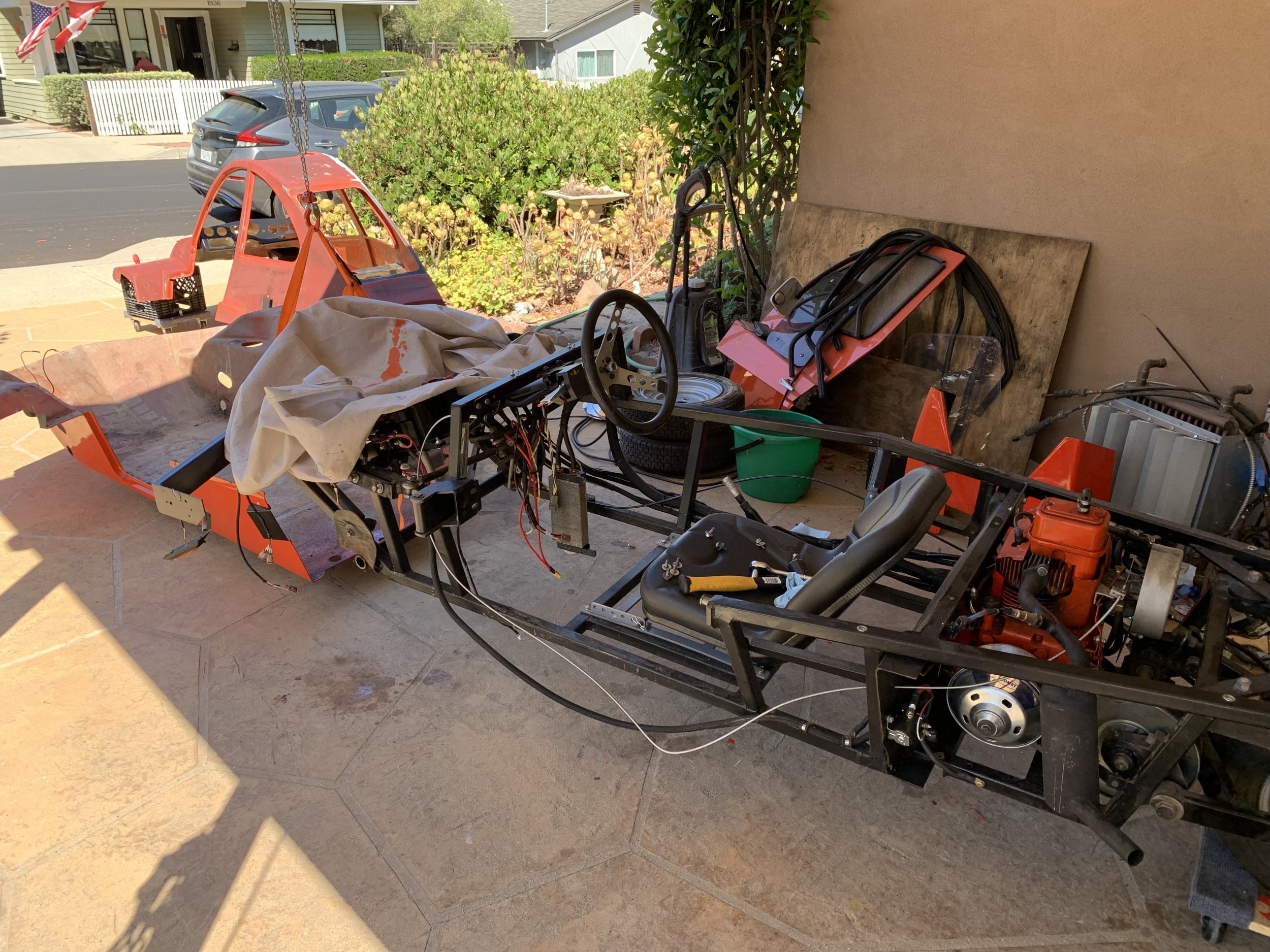 Fortunately, I have excellent friends, and a buddy of mine with a pickup truck came and we wound up towing the thing about a mile to the local hackerspace with a ratchet strap. It was an adventure, since I was riding in the freeway to steer, brake, and keep the strap taught.
