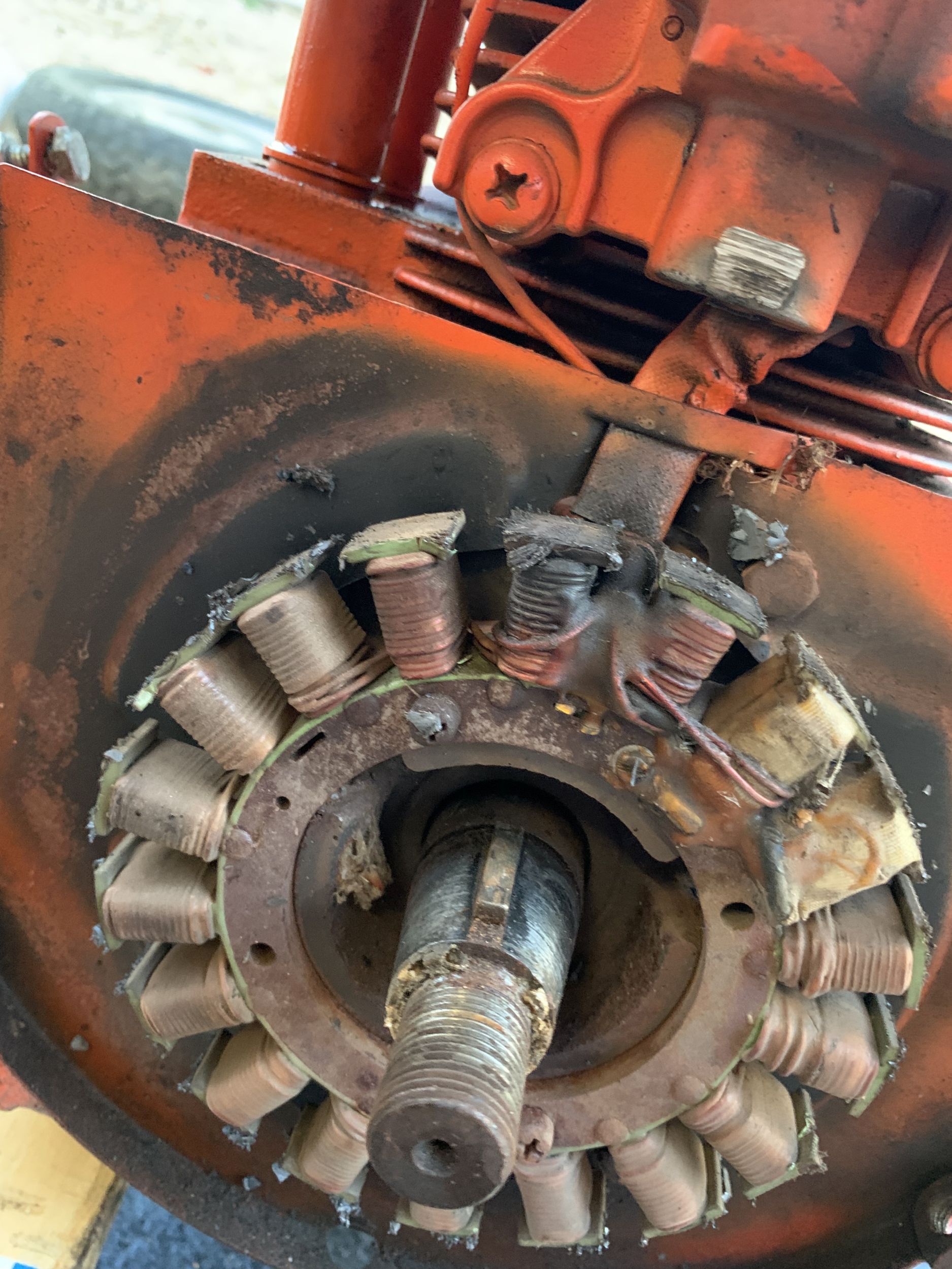 I then moved on to pull the flywheel/generator, and found what I believe to be the source of the issue.