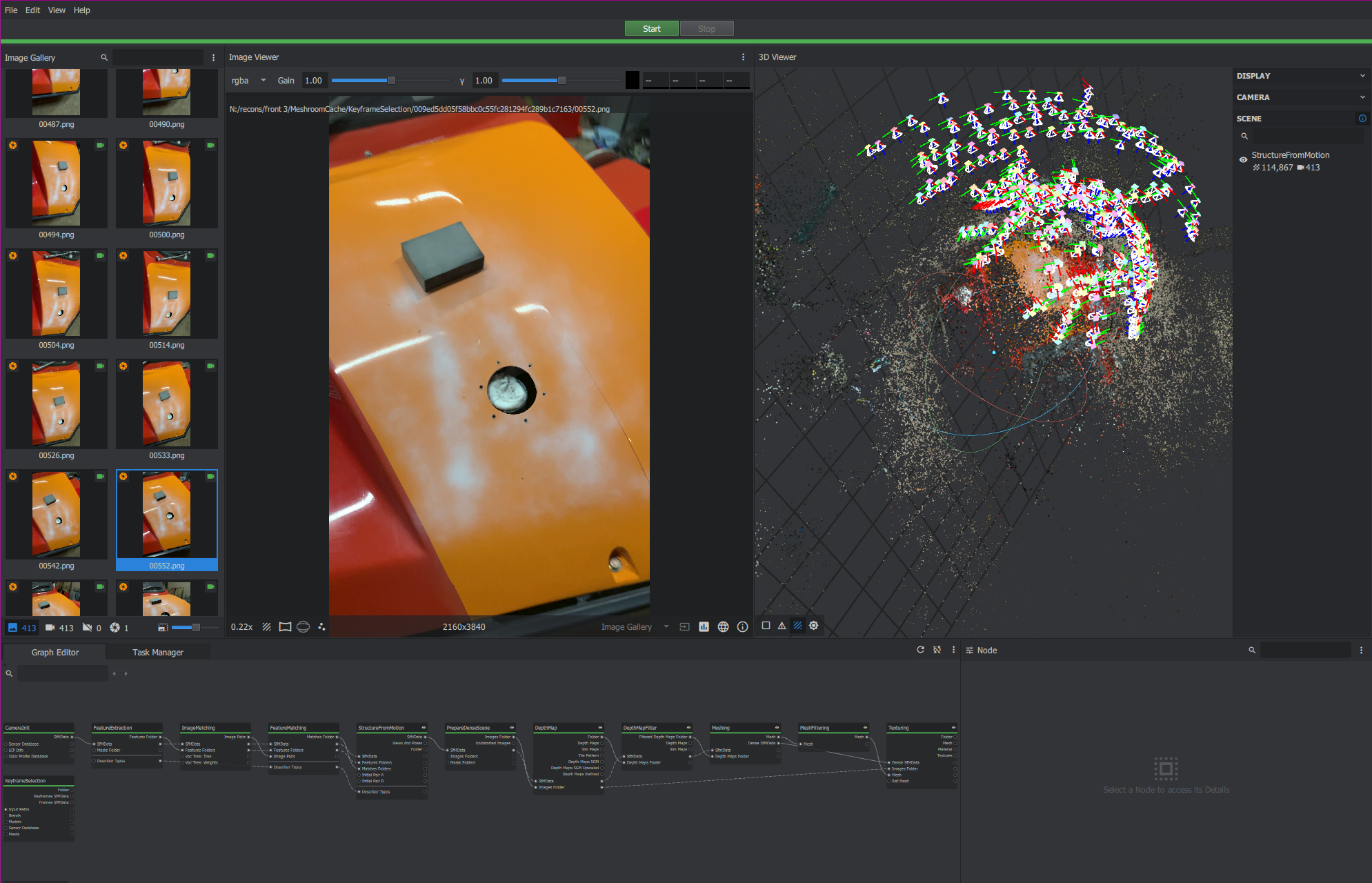 • Shove into meshroom. Extract frames from the video, and run the default mesh pipeline