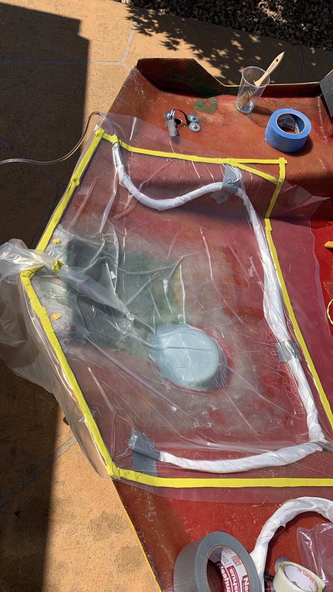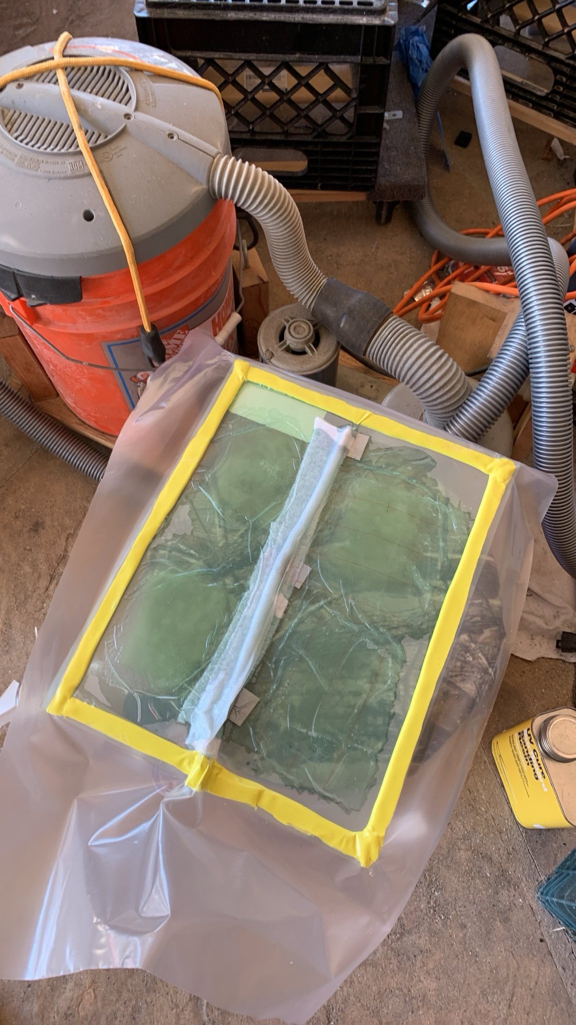I also decided to experiment with vacuum bagging. I did a test piece, and it came out really well. I’m using a UV-catalyzed polyester resin here, and it is super convenient. I should have been using this the whole time!
